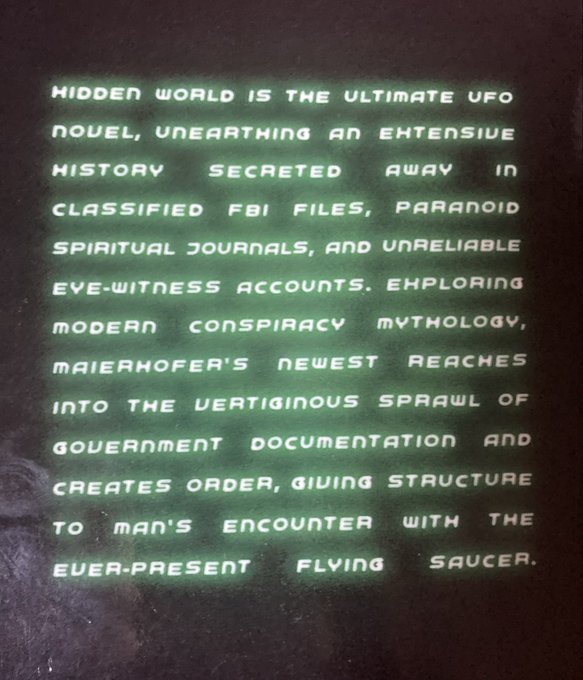 Hidden World, Grant Maierhofer (Cloak, 2025) Grant Maierhofer’s Hidden World might be tops this year for me. Fully realized and funny rewiring of the formal elements of the novel that operates throughout in the register of the sublime. Moby-Dick of UFOs.